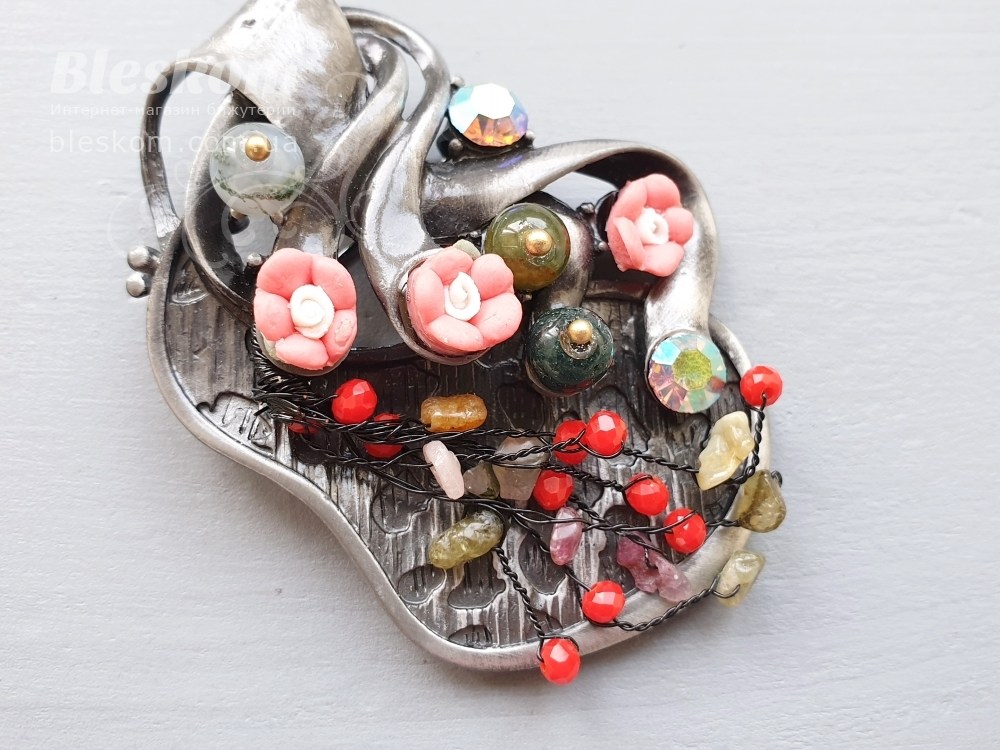 В нашем интернет-магазине представлен широкий ассортимент натуральных камней и фурнитуры для бижутерии. Также у нас можно выбрать и заказать броши, бижутерия, в частности брошь дизайнерская с камнями 3-355 - с доставкой в любой город Украины.