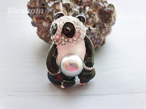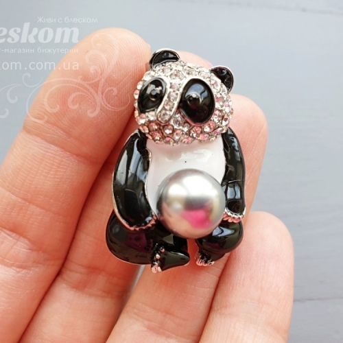 Брошь "Панда с жемчугом" со стразами 3-240
