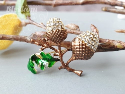 Брошь "Желуди" со стразами 3-298 продается за 142.00 грн в интернет-магазине бижутерии «Bleskom». Броши, бижутерия по низким ценам у нас можно купить с доставкой по всей Украине.