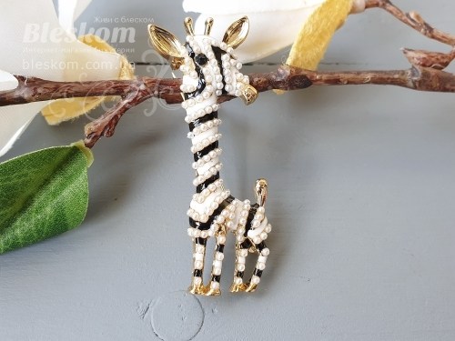 Брошь "Жираф" с бусинами 3-312