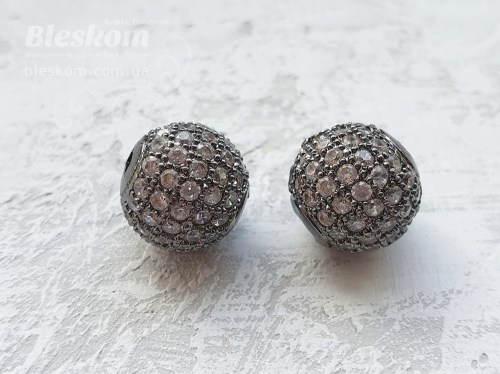 Бусина круглая, с фианитами (белые) 15753