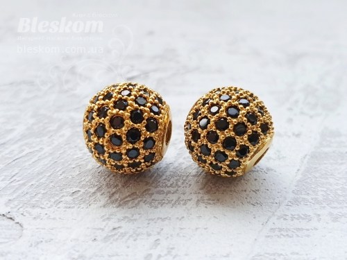 Бусина круглая, с фианитами (черные) 30110