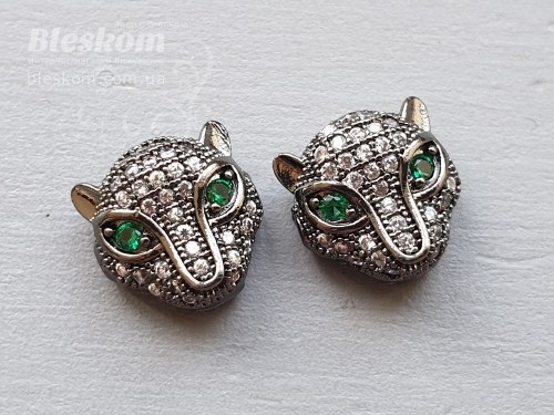 Бусина пантера с фианитами (белые с зелеными глазами) 30127
