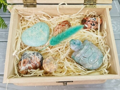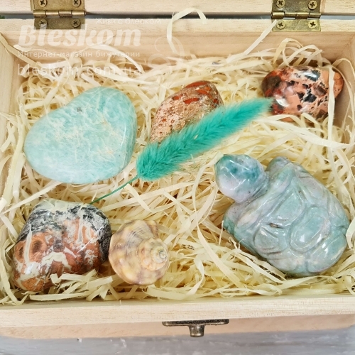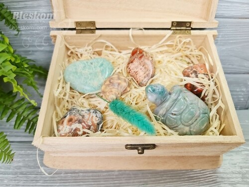 Набор натуральных камней в деревянной шкатулке 2-369