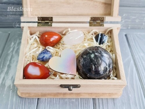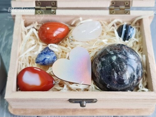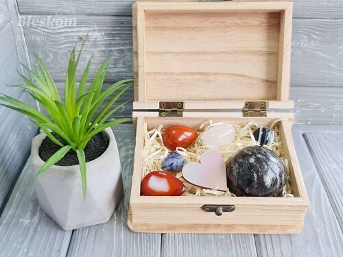 Набор натуральных камней в деревянной шкатулке 2-381