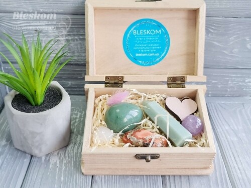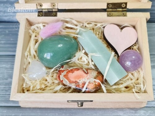 Набор натуральных камней в деревянной шкатулке 2-385