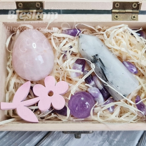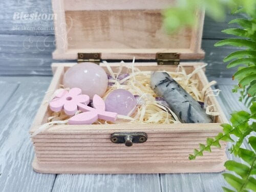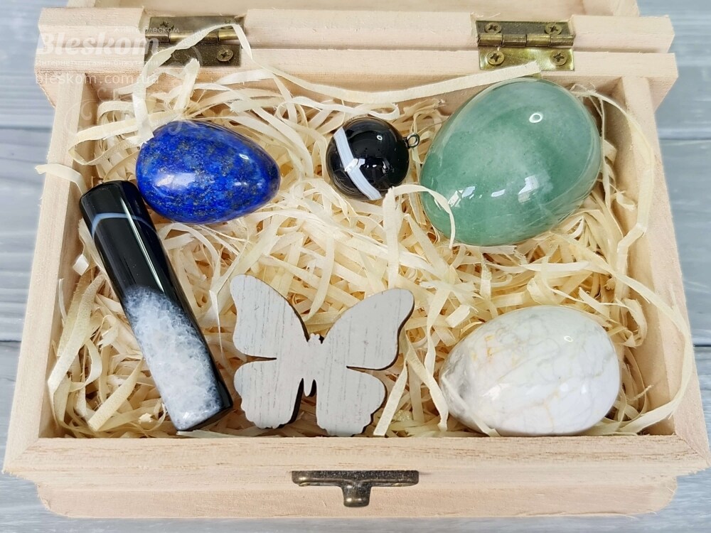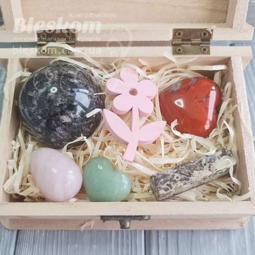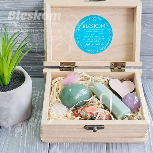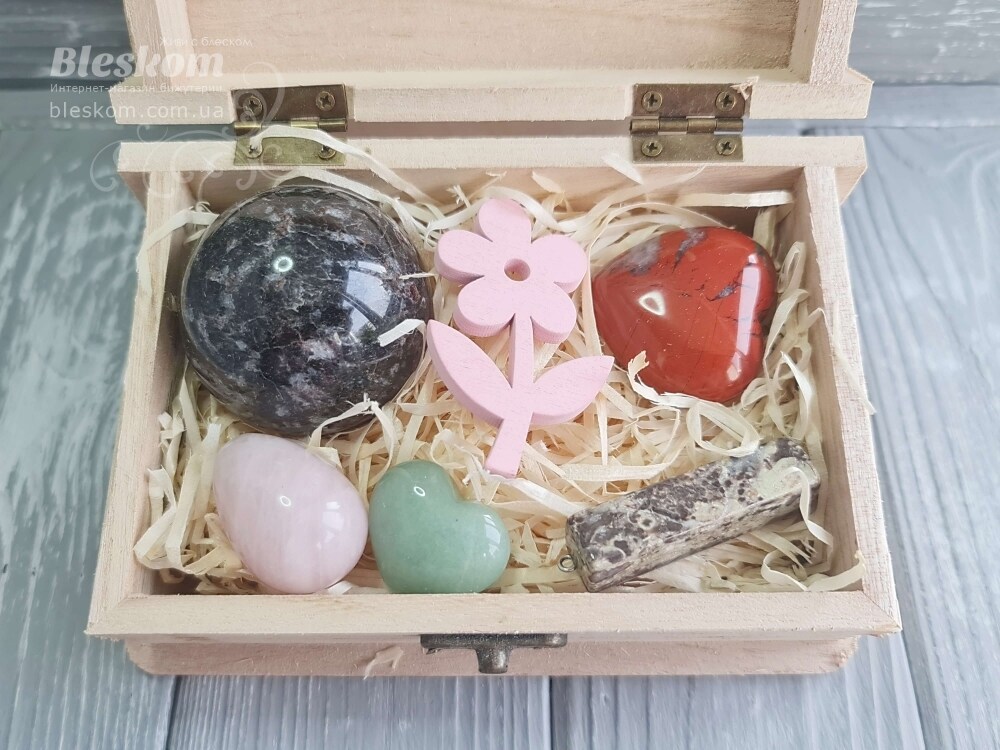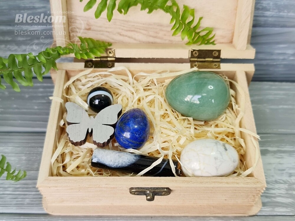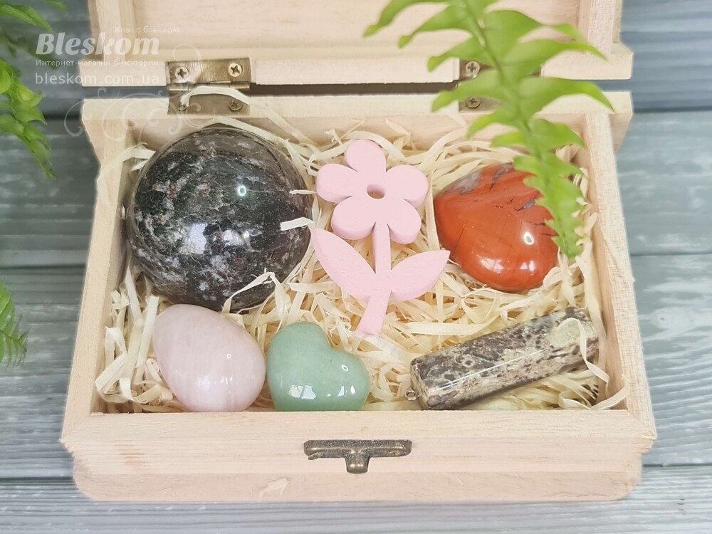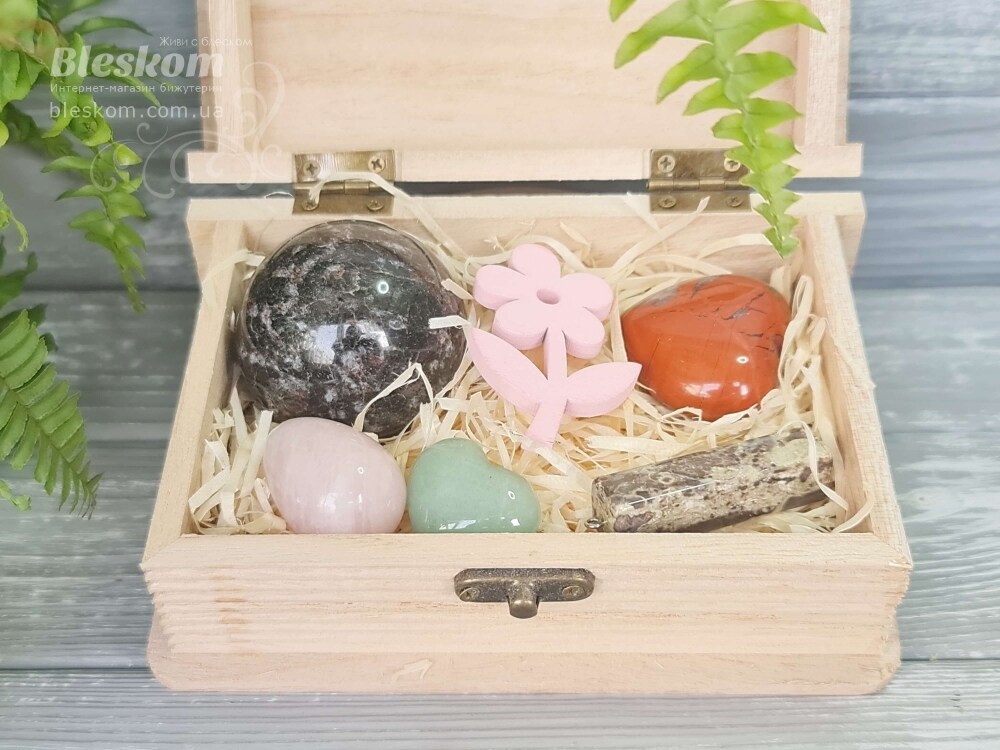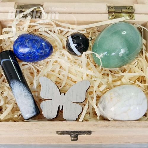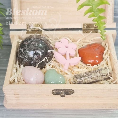 Набор натуральных камней в деревянной шкатулке 2-386