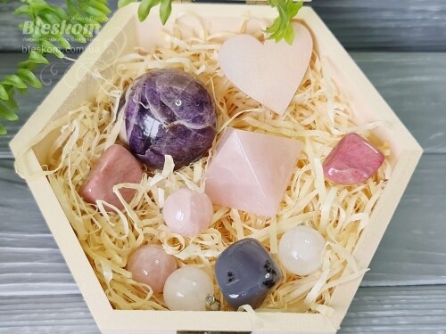 Набор натуральных камней в деревянной шкатулке 2-402