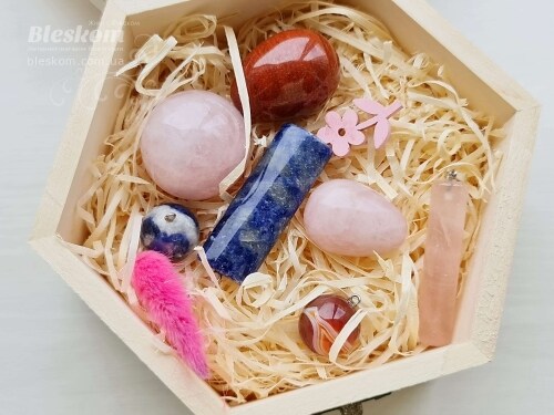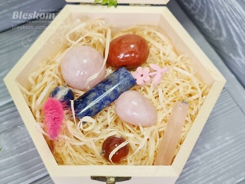 Набор натуральных камней в деревянной шкатулке 2-409