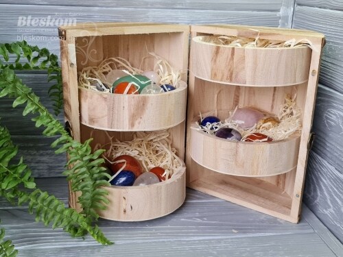 Набор натуральных камней в деревянной шкатулке 2-411