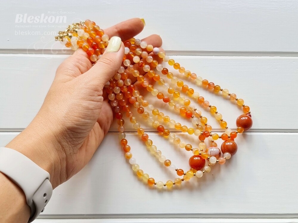Сердолик люкс, галтовка, натуральный, колье К6043 продается за 397.00 грн в интернет-магазине бижутерии «Bleskom». Сердоголик по низким ценам у нас можно купить с доставкой по всей Украине.
