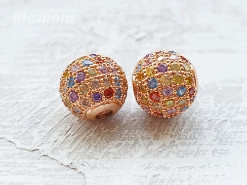 Намистина кругла, з фіанітами (кольорові) 15759