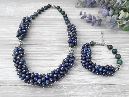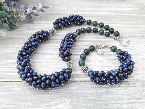 Кольє та браслет із хризоколи та лазуриту 1-457