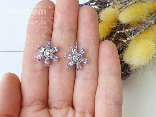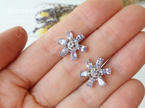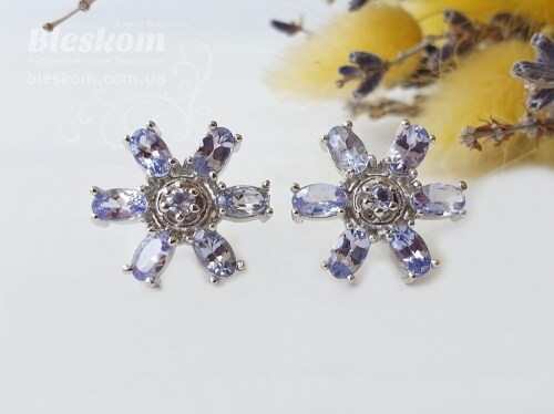 Сережки-гвоздики з натуральним танзанітом С683