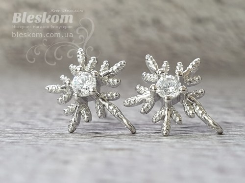 Швензи з фіанітами, гвоздик, 925 проба 925-169