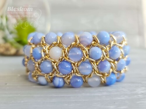 Браслет из натурального голубого сапфирина (агат) 1-422