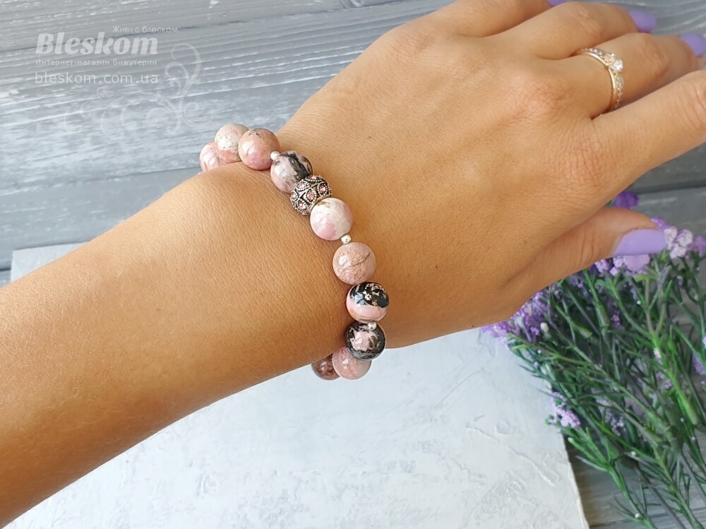 Браслет из натурального родонита люкс 1-383 продается за 490.00 грн в интернет-магазине бижутерии «Bleskom». Женские браслеты по низким ценам у нас можно купить с доставкой по всей Украине.