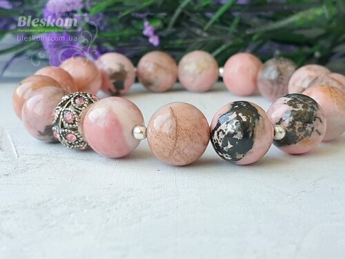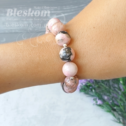 Браслет из натурального родонита люкс 1-383